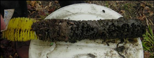 The outlet tee or baffle in a gravity system prevents the scum layer from entering the leach field. A compromised outlet tee can quickly result in system failure. Check annually to ensure these components are intact, particularly in concrete tanks where baffles can erode.